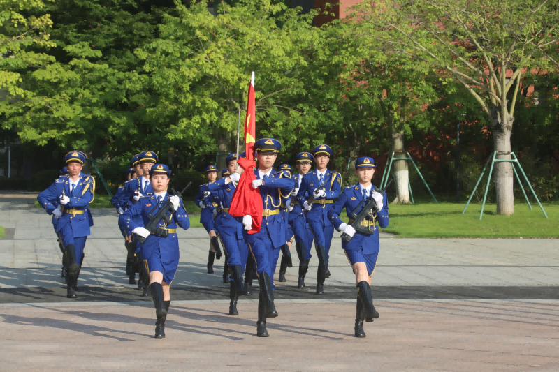 “齐步走!”国旗护卫队同学踏着整齐的步伐,怀着赤诚的敬意,昂首挺胸走向升旗台。