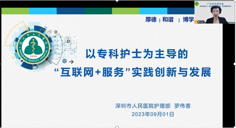 罗伟香主任做了题为《以专科护士为主导的“互联网+服务”实践创新与发展》的报告。她表示,以专科护士为主导的多学科团队“互联网+服务”360全程模式,联合慢性病相关临床科室、网络医院、信息科、设备科等共同参与,能够实现患者“门诊-入院-住院-出院前-出院后-居家”的全流程健康管理。