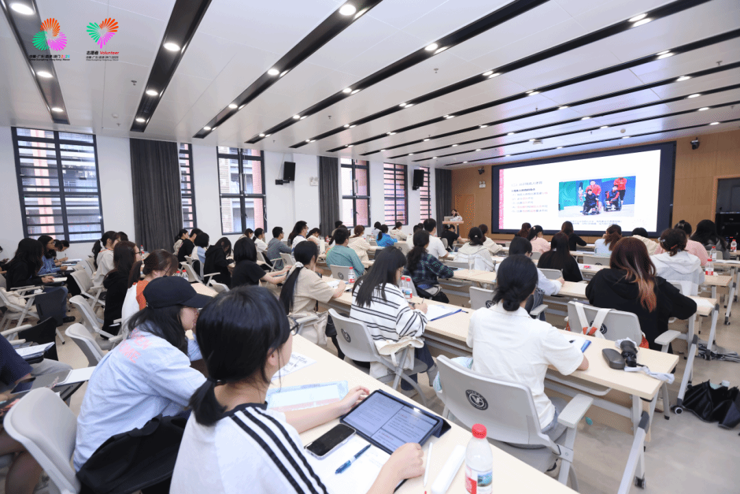 开班仪式结束后,培训正式开始。此次培训课程设置独具匠心,包含《志愿服务基础与技巧》《扶残助残志愿服务》《全运会概况与志愿岗位介绍》等九门专题课程。市团校的老师们通过案例分享、游戏互动、情景体验等多种形式讲解扶残助残的多种实用技能,指导志愿者们在开展服务时的站姿、手势和表情管理等礼仪规范,让同学们分组演练心肺复苏、外伤包扎等急救技能。