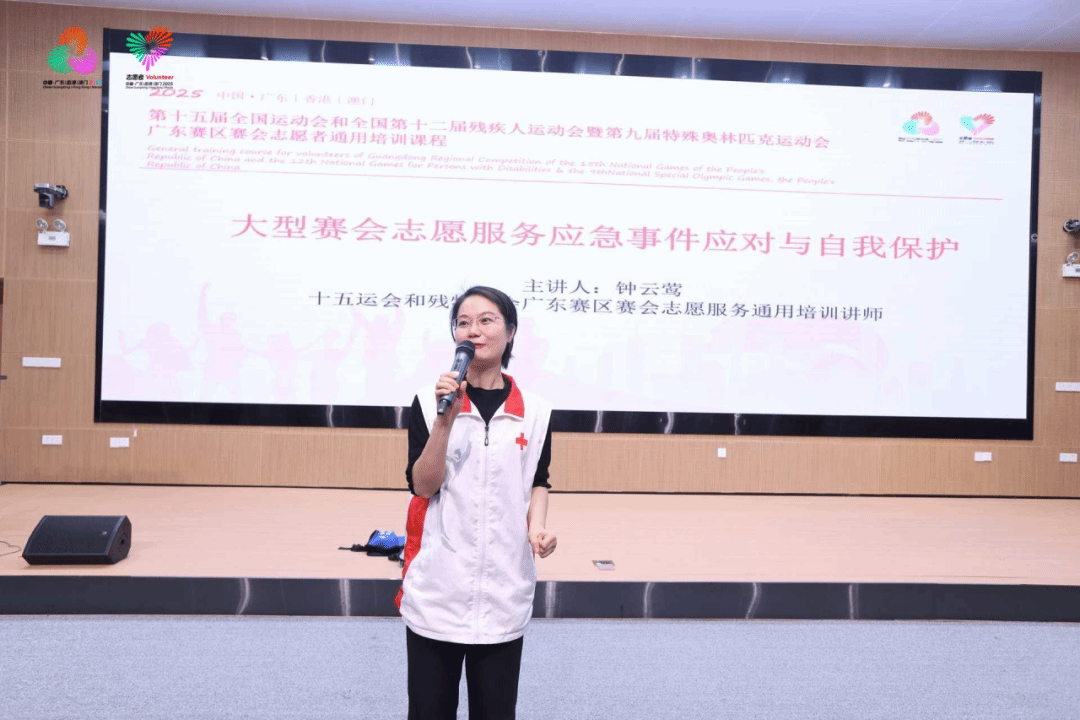 十五运会和残特奥会广州赛区执委会志愿者部副部长刘韵华为全体预录用志愿者做开班仪式动员讲话。她肯定了best365近年来在志愿服务领域所取得的成绩,并勉励同学们珍惜服务机会,牢记职责使命;专注投入培训,夯实服务根基;用心提供服务,追求卓越品质。她表示,希望同学们能够真正将培训内容学深悟透,练就过硬技能,为上岗服务打下坚实基础,共同为赛事的成功举办贡献青年力量。