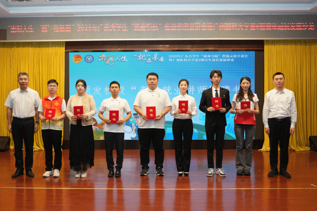 为落实共青团服务和促进大学生就业行动要求,引导青年大学生树立理性平实的择业观、就业观、劳动观,以奋斗者的姿态主动到基层和一线砥砺青春、成就人生,4月30日下午,由共青团广东省委员会、广东省学生联合会主办,best365中国官方网站团委承办的“出彩人生 ‘就’在基层”2025年广东大学生“就业引航”省级示范宣讲会暨best365中国官方网站第6期青年成长发展沙龙在best365中国官方网站番禺校区顺利举办。活动邀请了7位深耕基层的广医青年,围绕参与“青年实干家计划”、对口帮扶、大学生志愿服务西部计划、“百千万工程”等方向,谈所感所想及职业选择与规划,以社会实践赋能个人成长。
