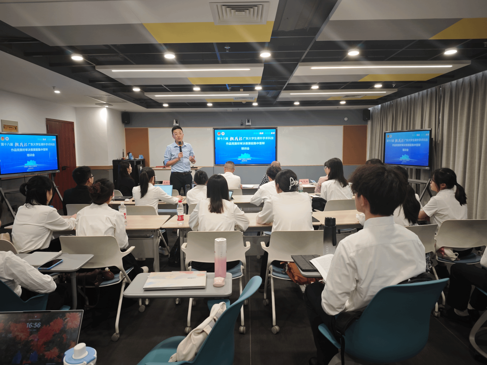 学校团委自2024年10月组织开展第十八届“挑战杯”广东大学生课外学术科技作品竞赛校赛,在此期间共收到参赛作品209项。经专家函评、现场答辩,共有18件作品推荐至广东省终审,16件作品入围终审决赛(含2项专项赛作品)。赛前,学校团委制定精细化项目打磨培训方案,协调校、内外优质资源和技术保障,选拔优秀团队进行培育,先后组织多场培训会,通过一对一辅导、多轮次模拟答辩、演讲培训等形式全方位、全过程做好作品打磨工作,从赛制、选题、参赛作品撰写、团队协作、文本美化、答辩技巧等方面进行系统性培训指导,不断提升项目质量,为各项目团队备赛构筑“坚实后盾”。