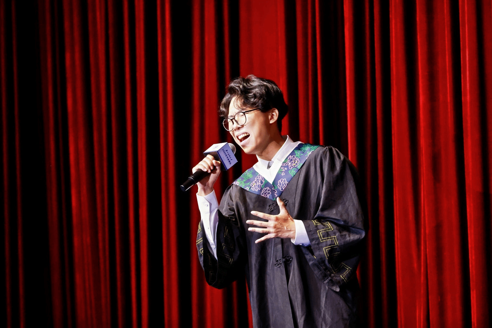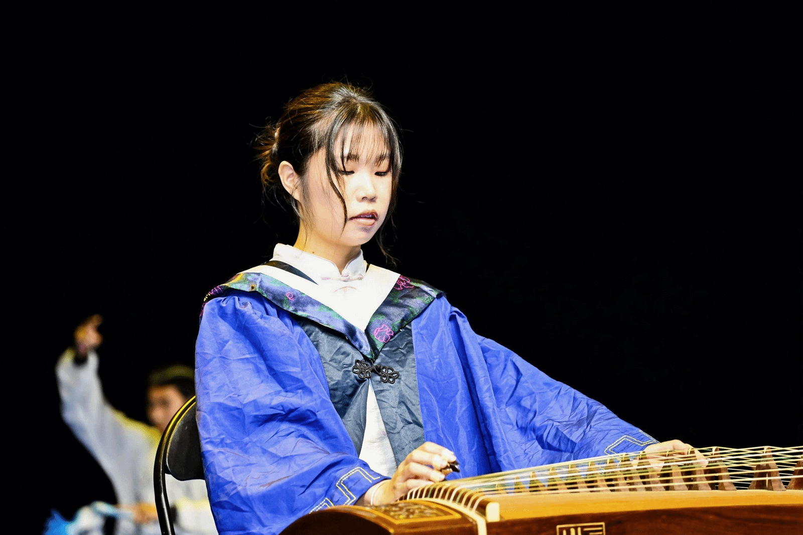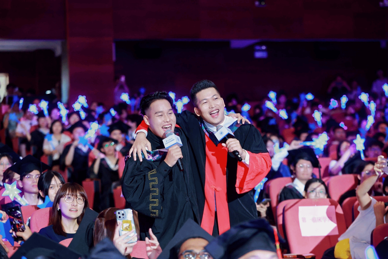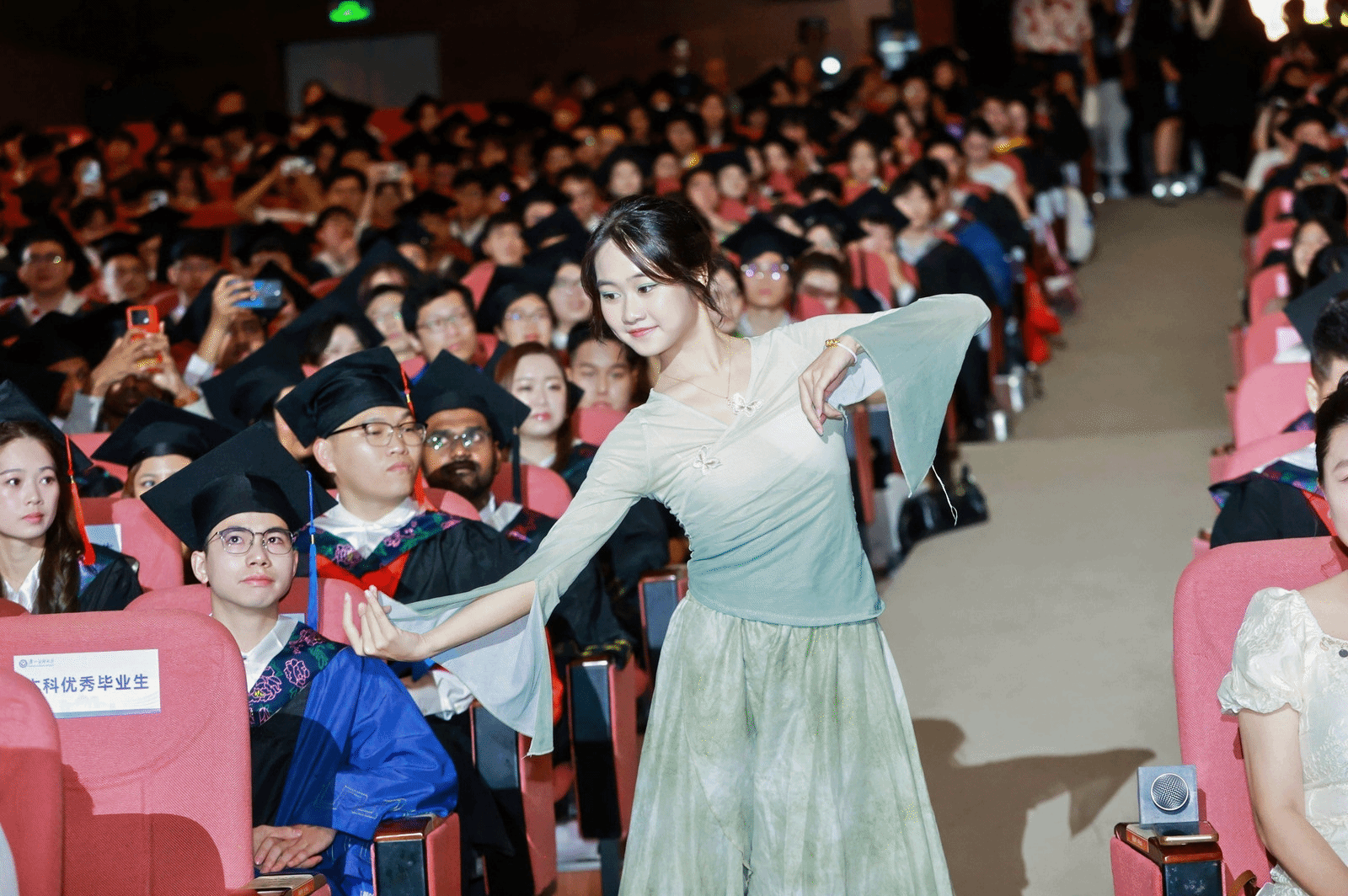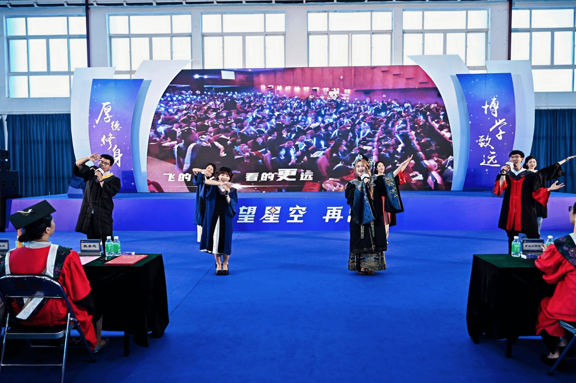 悠扬琴声响起,毕业典礼拉开序幕,将现场观众拉入广阔“星海”之中。各种风格的歌曲、舞蹈、乐器演奏等节目在主会场与分会场轮番上演,点燃现场气氛。