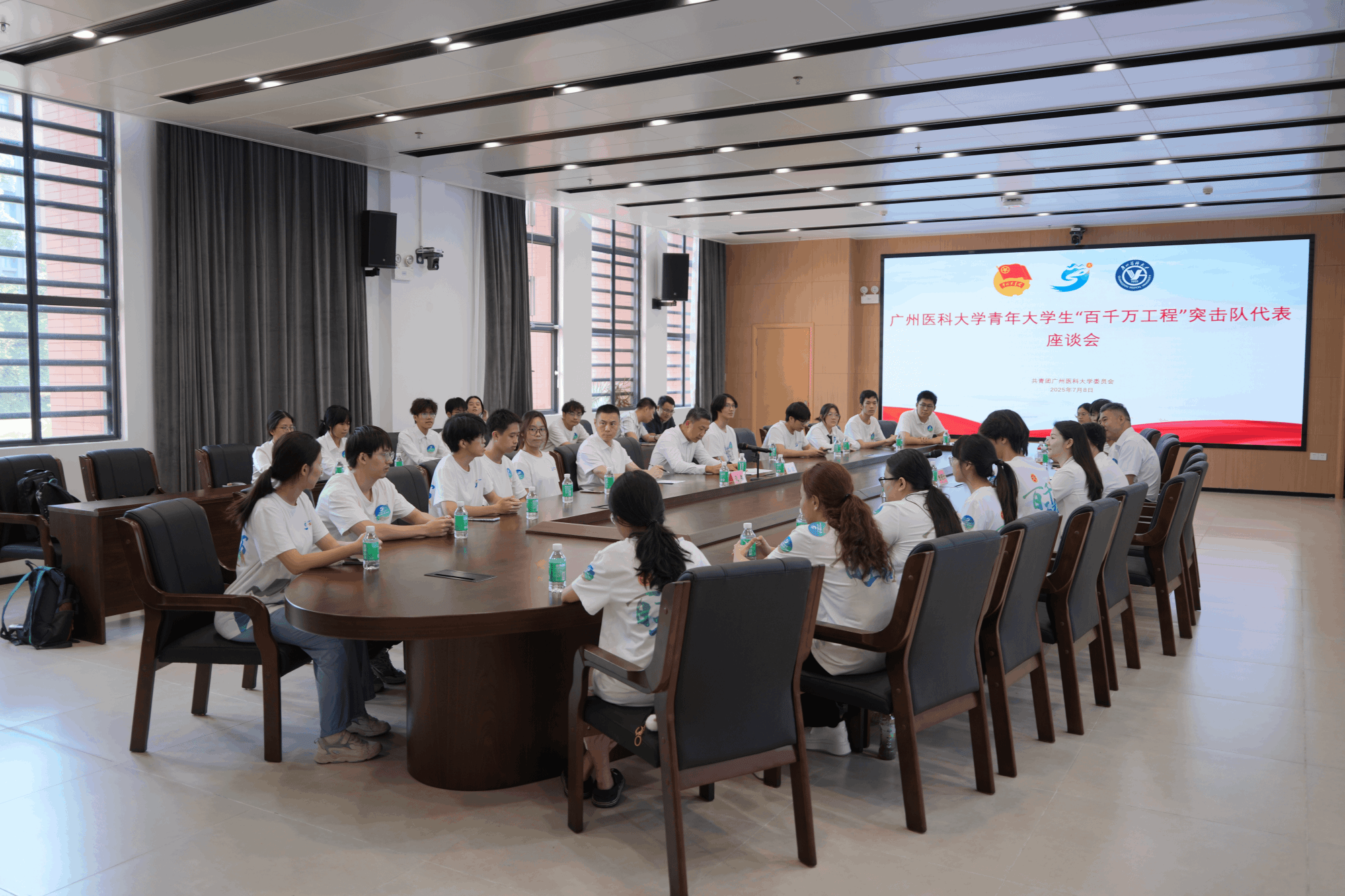 冉波书记在座谈会中强调了广东青年大学生“百千万工程”突击队行动的目的与意义,充分肯定了best365在推动广东青年大学生“百千万工程”突击队行动中作出的积极贡献。他表示,习近平总书记在致全国青联十四届全委会和全国学联二十八大的贺信中指出,以中国式现代化全面推进强国建设、民族复兴伟业,青年大有可为。他勉励广医青年学子充分发挥医学专业大学生优势,以解决基层实际问题为导向,在实践中锤炼真才实学,书写属于青年与乡土双向奔赴的美好篇章。