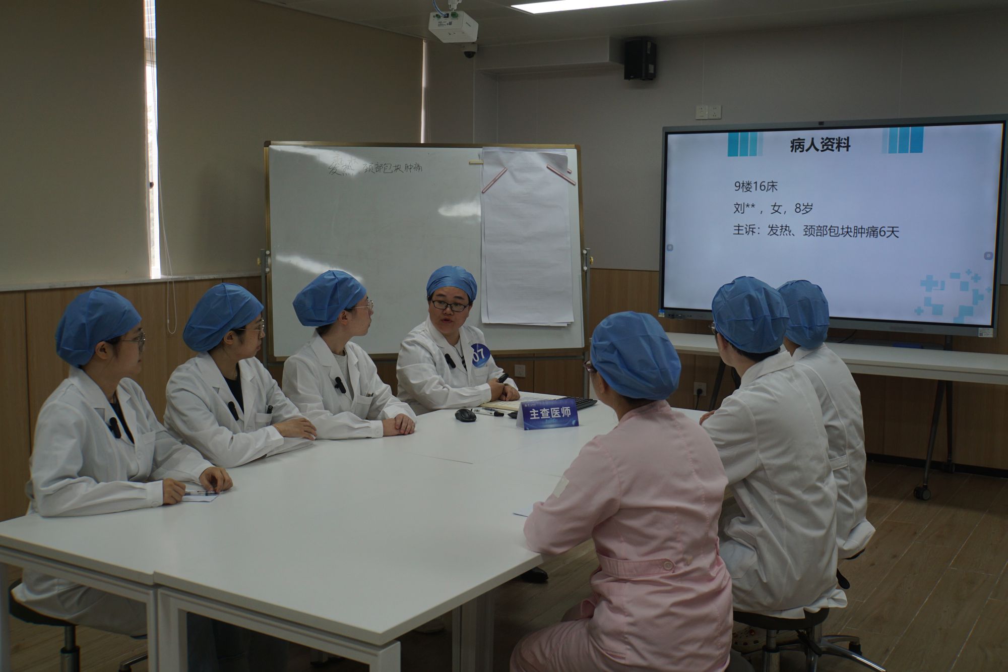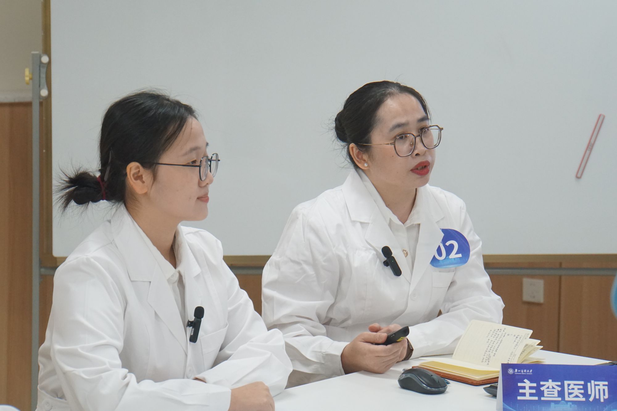 决赛现场,各参赛团队完整呈现教学查房全流程,聚焦重点、凸显亮点。从查房准备、病例汇报、四诊查体到病例讨论,团队通过各环节明确教学查房目标,围绕具体病例展开深度讨论学习。