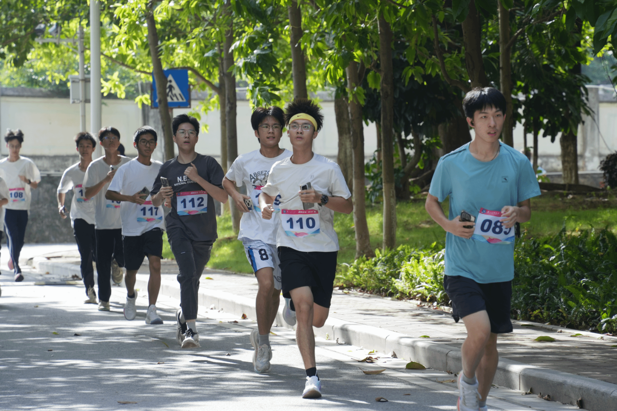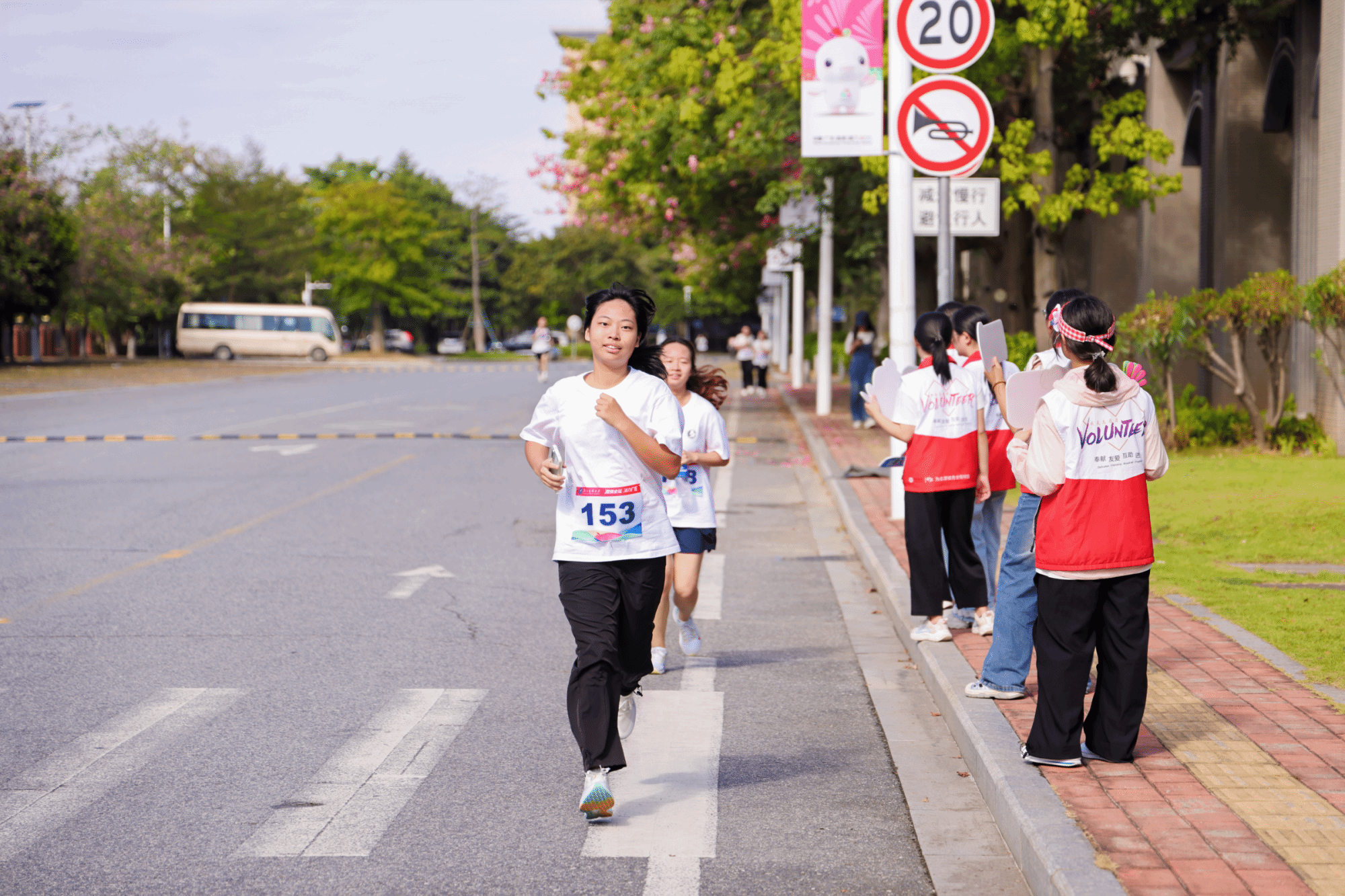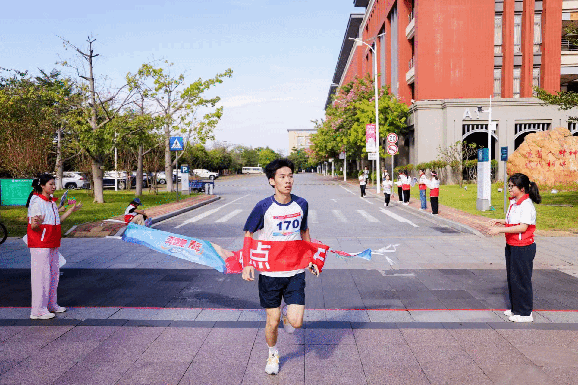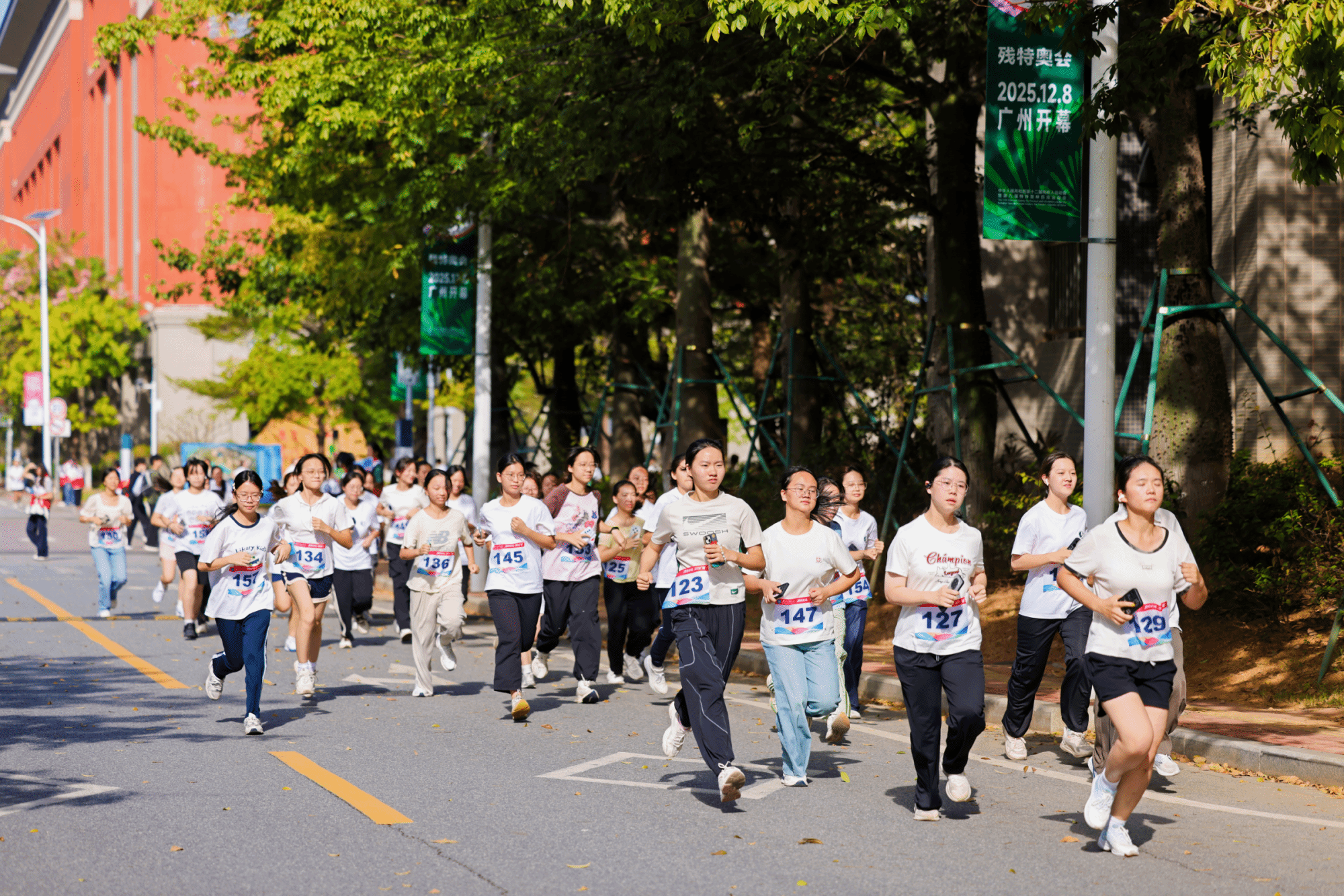 参赛师生在校道迎风奔跑