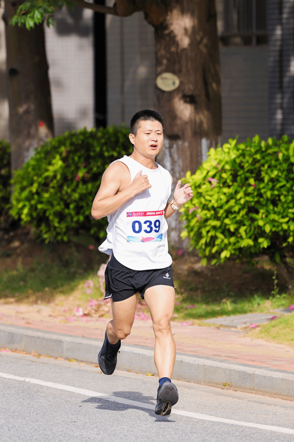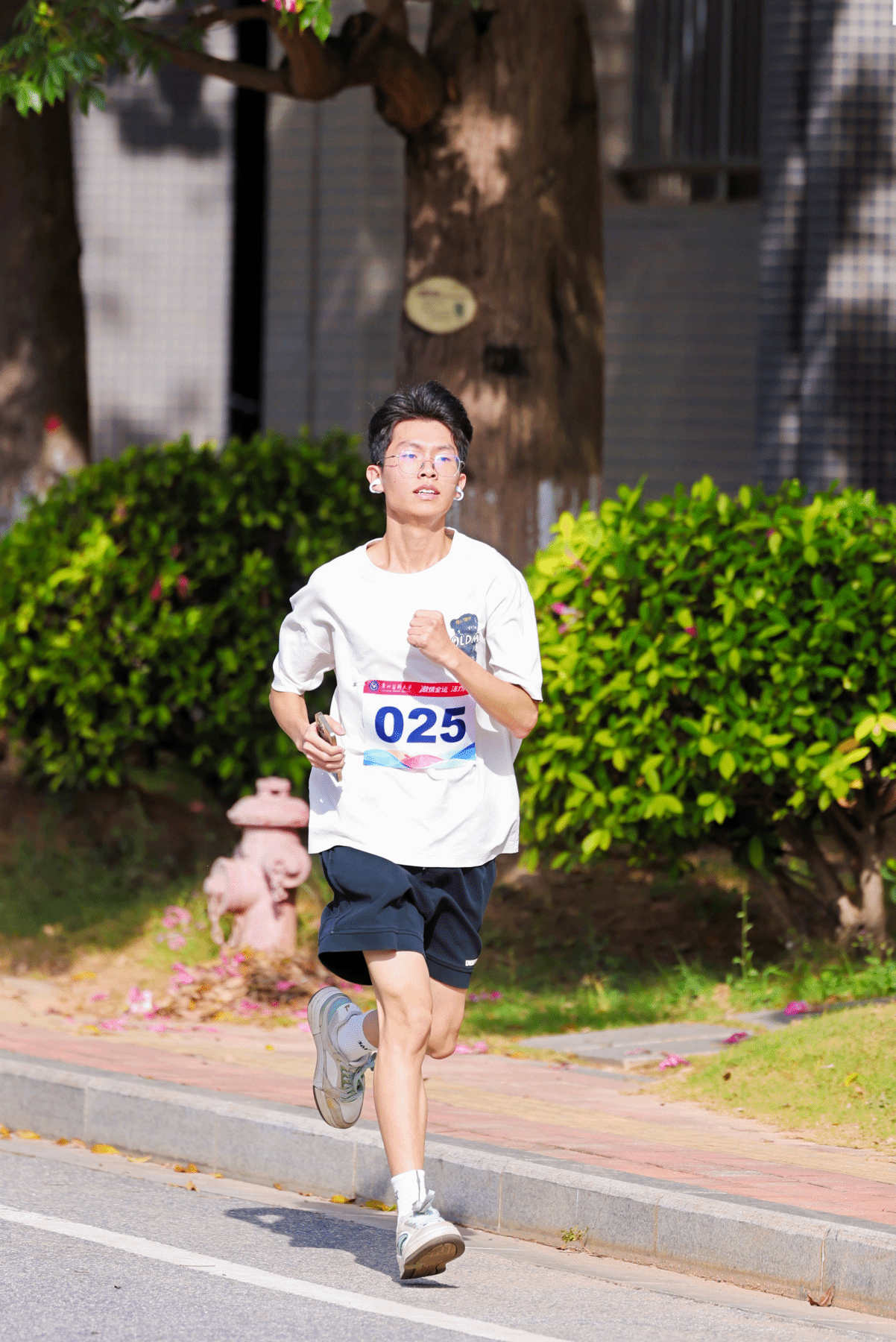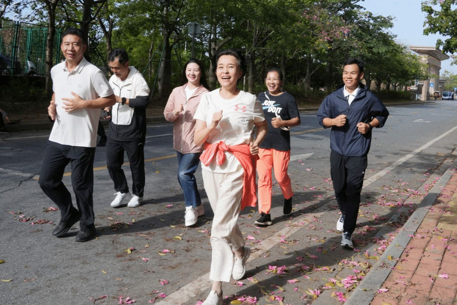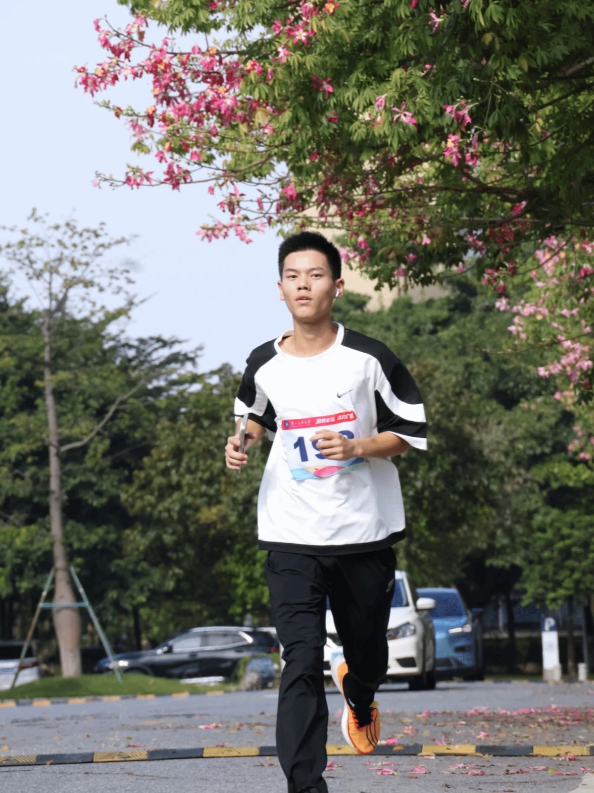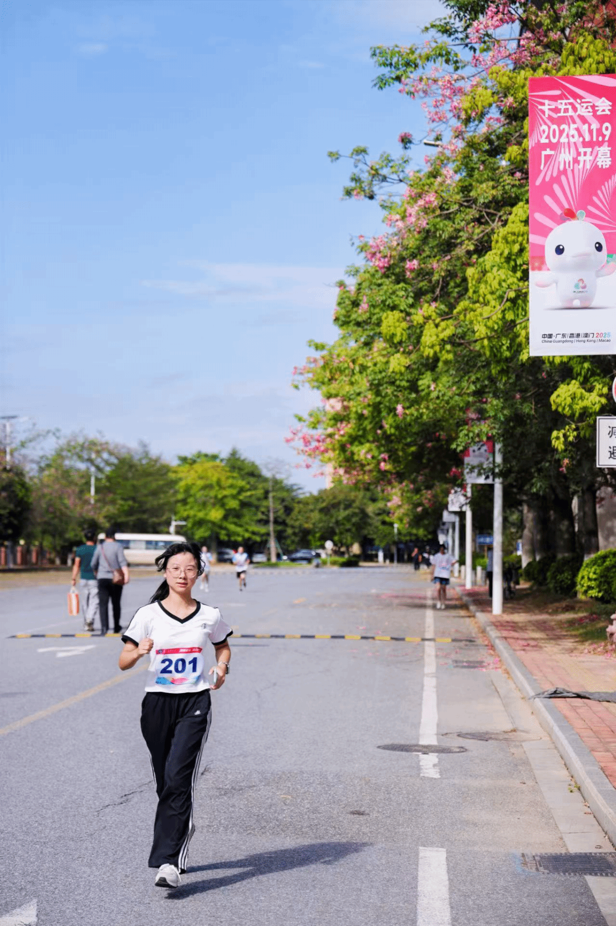 参赛师生在校道迎风奔跑