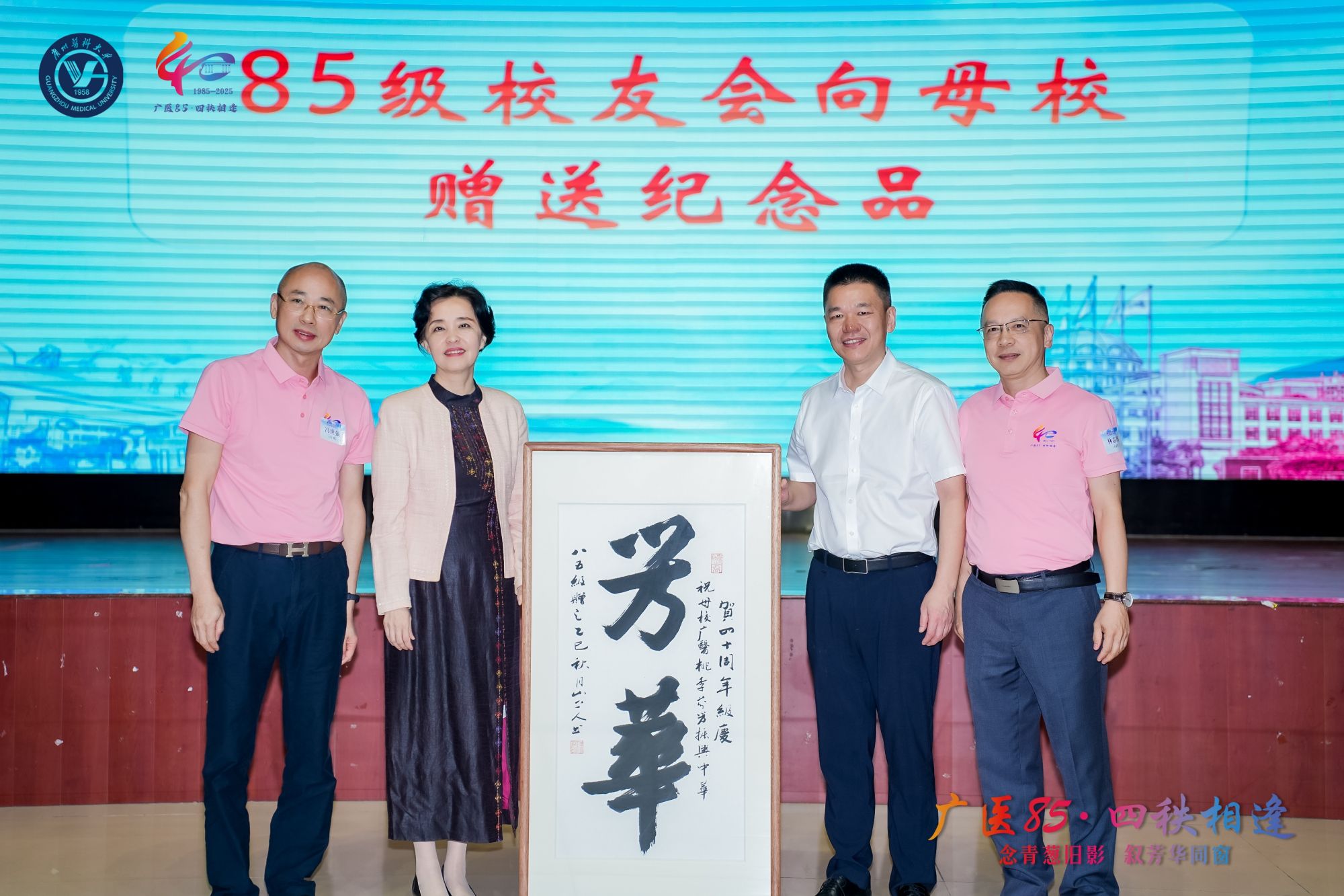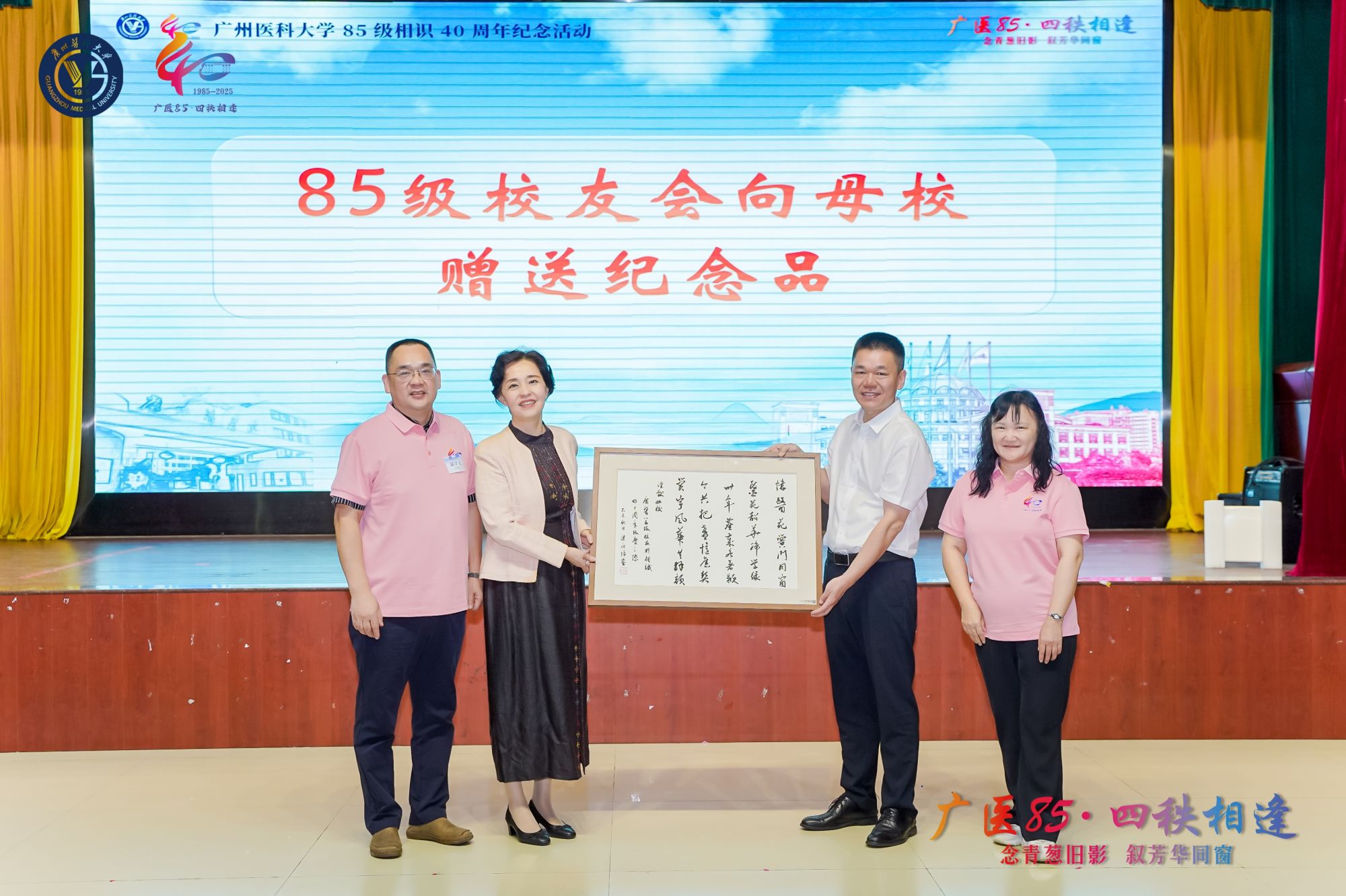 1985级校友代表麦雨时代表全体同学致欢迎辞,并深情回顾了在母校求学的点滴时光。付晓东副校长向校友们介绍了学校近年来的发展成绩与未来规划,展现广医蓬勃发展和创新突破的历程。