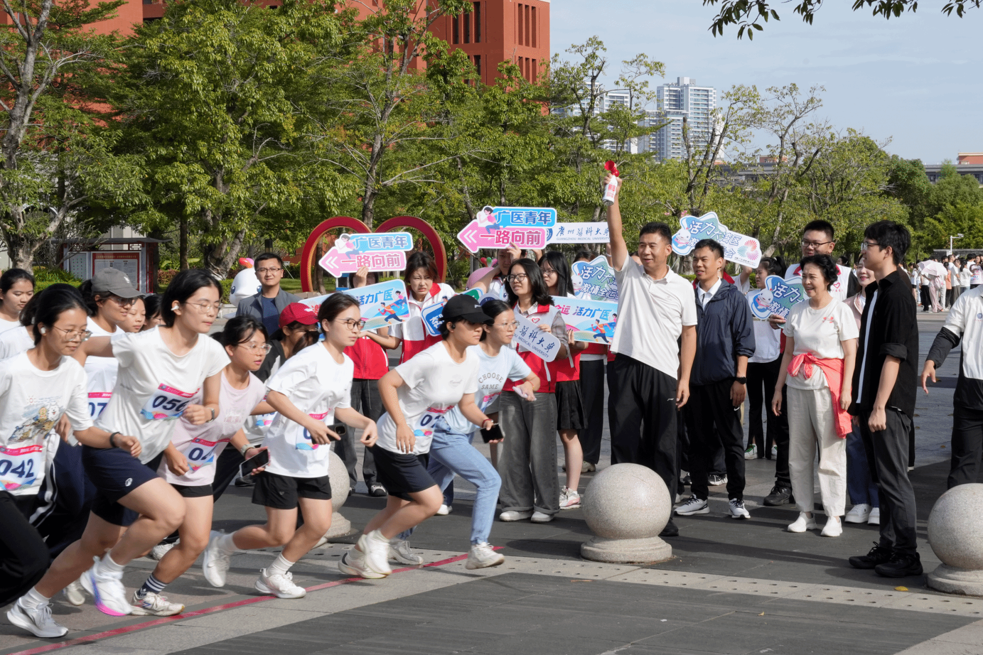11月8日,“激情全运,活力广医”best365中国官方网站2025年青春校园跑活动正式开跑。活动由学校团委、体育部主办,校学生会承办。学校党委书记曾颖如、副校长周麟,学校团委、体育部负责人参加活动。240名广医青年沿着广医校园完成2.5公里赛跑,留下青春足迹,活力迎全运。
