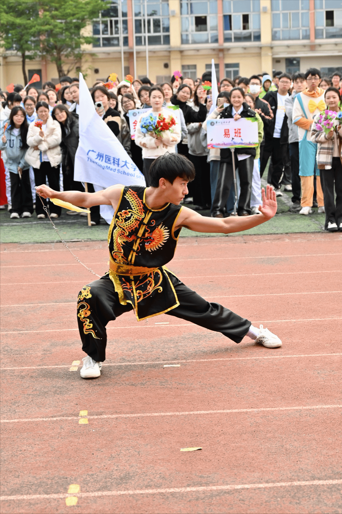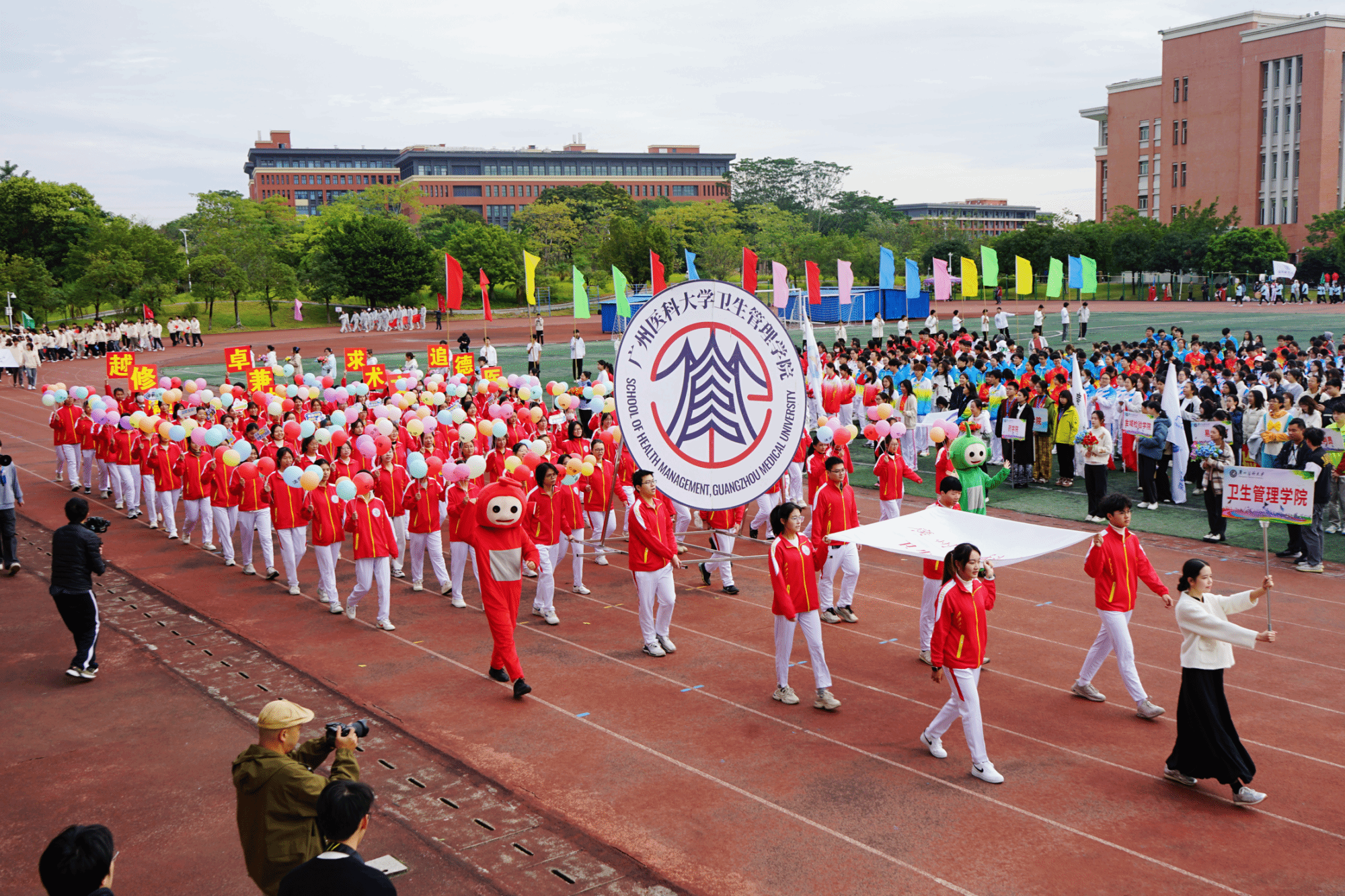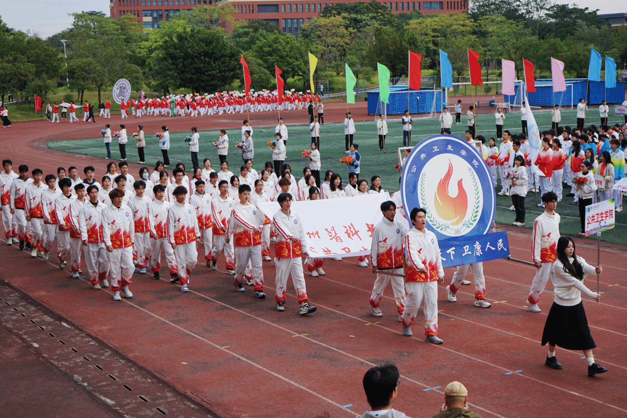 李建华副校长在致辞中表示,校运会赛场内外洋溢着团结友爱、健康快乐的良好氛围,充分展现了广医人积极向上、奋勇拼搏的精神风貌以及学校体育事业蓬勃发展、学生体育素质持续提升的良好态势。