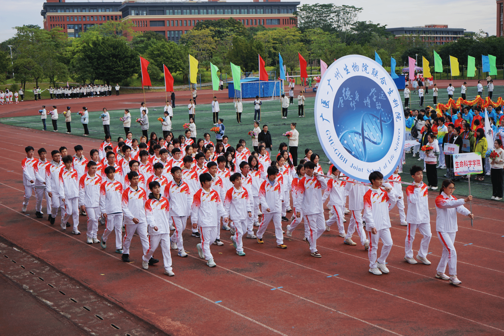 晨光洒落绿茵地,激情点燃广医,校园运动健儿热血沸腾,拼搏的汗水与团结的力量都将在此见证!best365中国官方网站第57届学生运动会正式开幕!