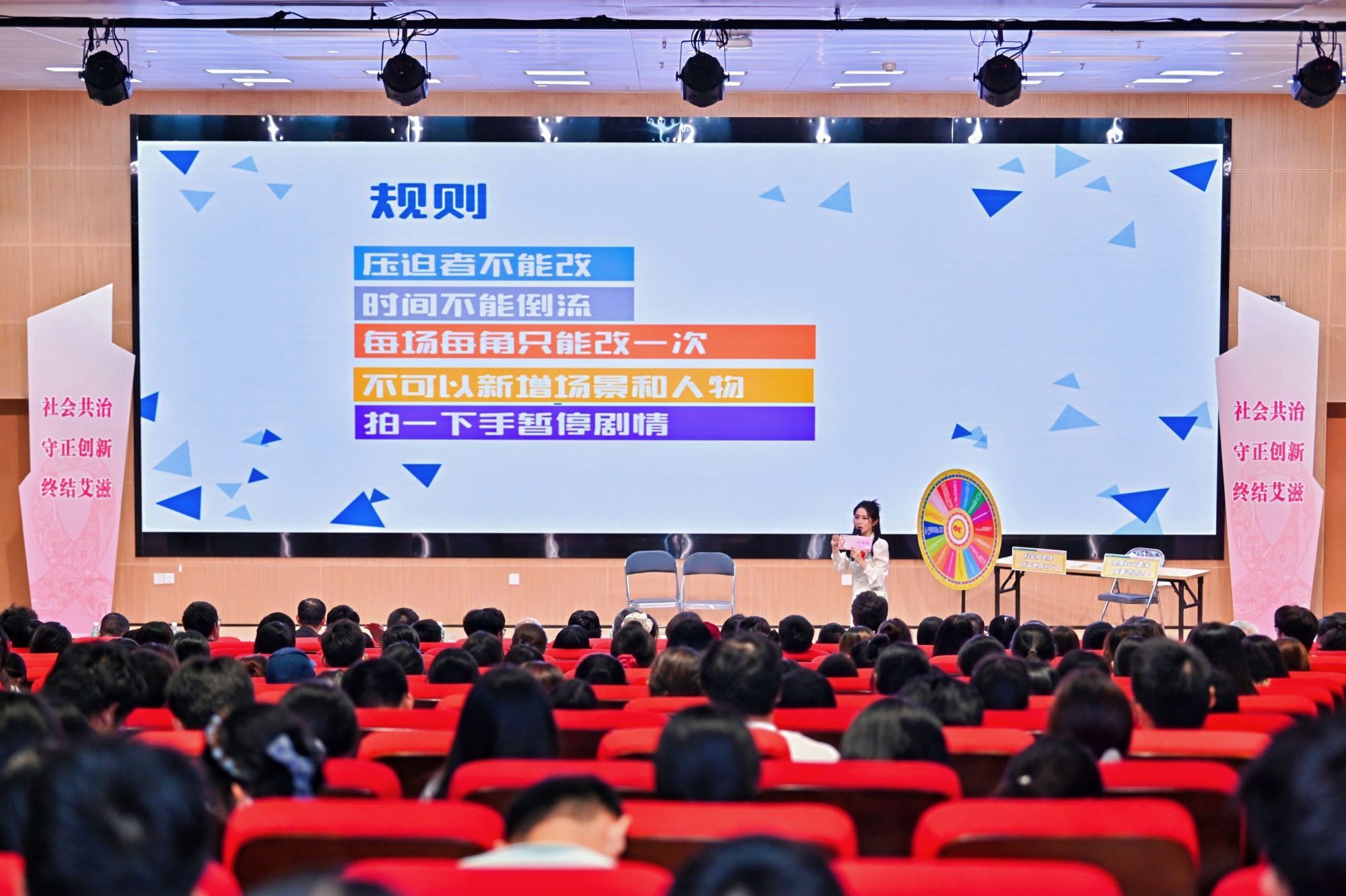 多病共防知性防艾论坛剧场《都是尖尖惹的祸》精彩上演。在演出过程中,现场的同学们不只是做观众,还可以上台参演,在公共、开放、多元、接纳、理性的氛围中,积极思考、解决剧本所隐藏的问题。剧中穿插HPV疫苗科普、艾滋病检测知识与多病同防宣教,传递出“健康无性别、防护靠科学”的理念,以呼吁广大青年要正视性健康,破除偏见,以责任守护自身与他人的健康。