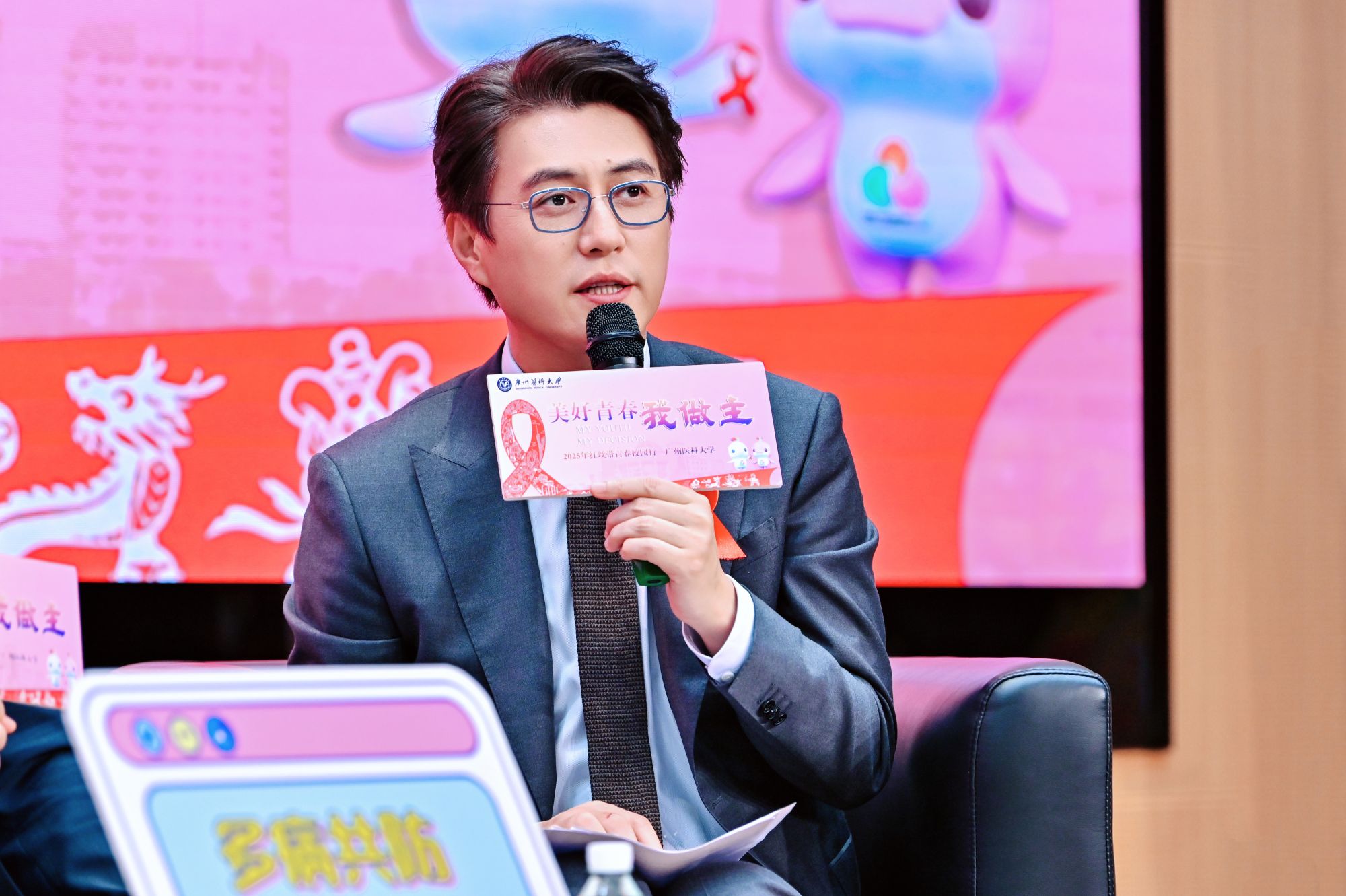 在专家访谈环节,红丝带健康大使靳东,中国性病艾滋病防治协会副会长、广东省性病艾滋病防治协会会长唐小平,广东省疾病预防控制中心传染病预防控制领域首席科学家林鹏,广东省疾病预防控制中心副主任李艳,一起和同学们聊“防艾那点事”。