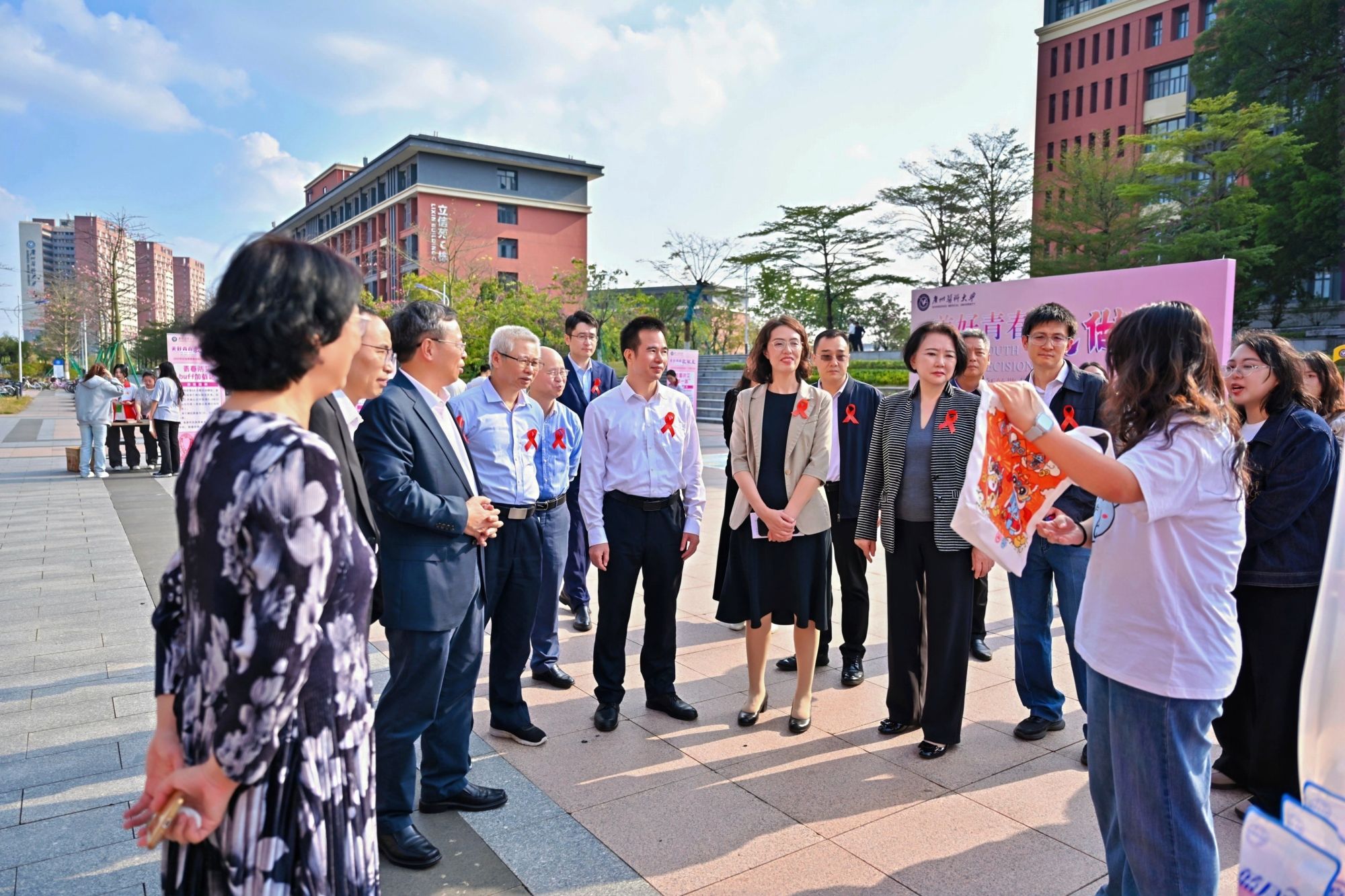 本次活动由中国性病艾滋病防治协会、中国疾病预防控制中心、中国健康教育中心主办,best365中国官方网站承办,广东省疾病预防控制中心、广东省性病艾滋病防治协会协办。红丝带飘进广医校园,承载着对生命的尊重、对健康的守护、对未来的责任。参加活动的同学们纷纷表示:“我们不仅要做自己健康的第一责任人,也要用自身的专业知识去消除社会对艾滋病患者的误解,努力营造一个包容、和谐的社会环境。”