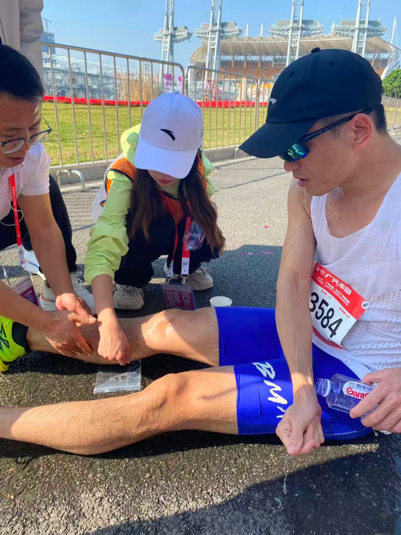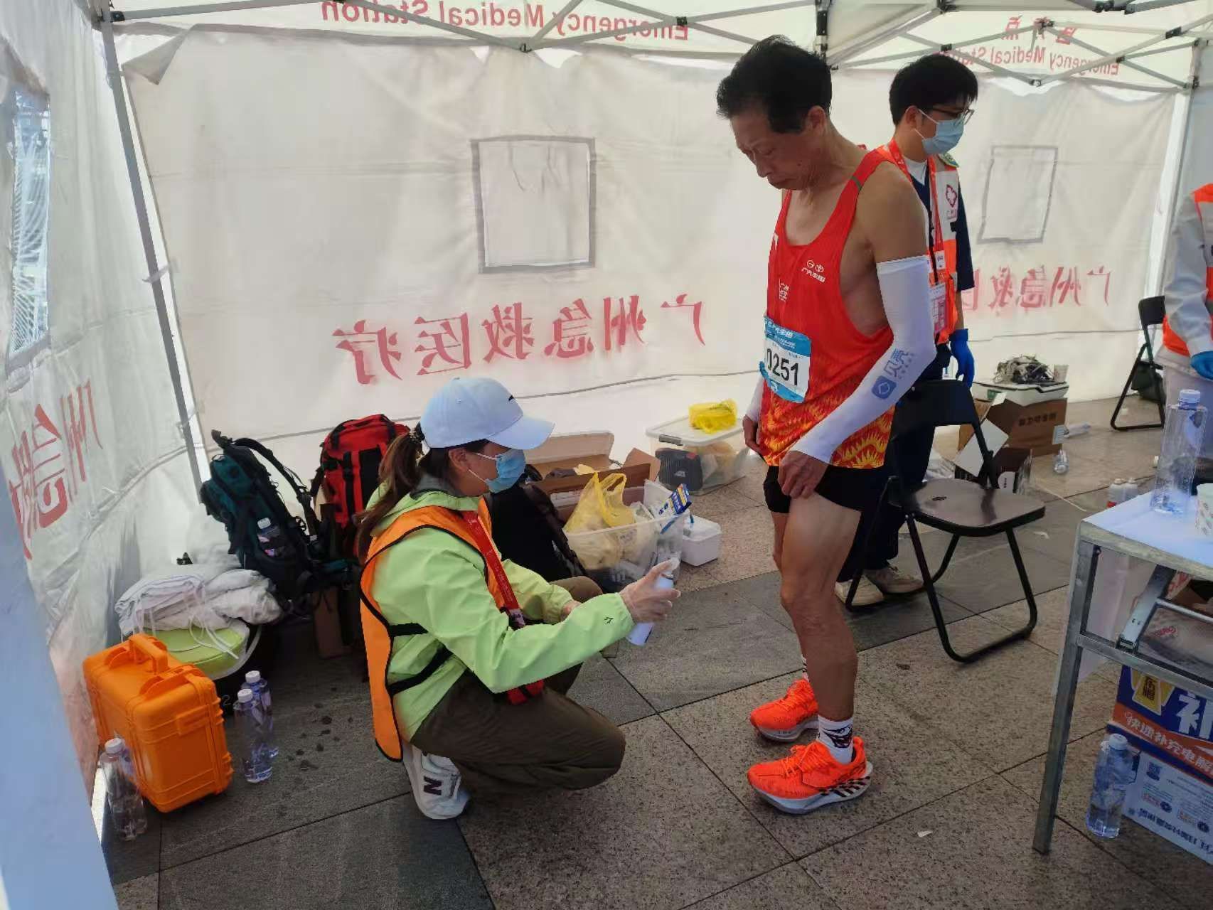 广医辅助医疗志愿者是赛道上最亮眼的“生命红”,扮演着赛道“健康小站”的重要角色。