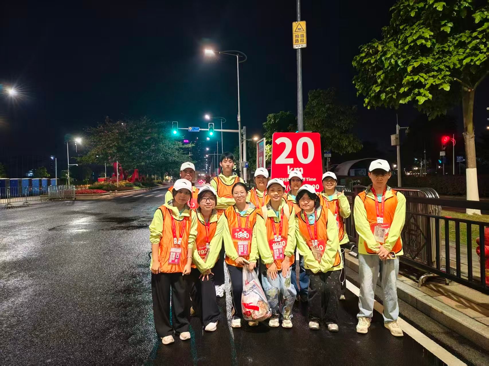 城市尚未完全苏醒,志愿者已分赴赛事起终点、医疗点、赛道关键路口等岗位完成赛道布防工作。
