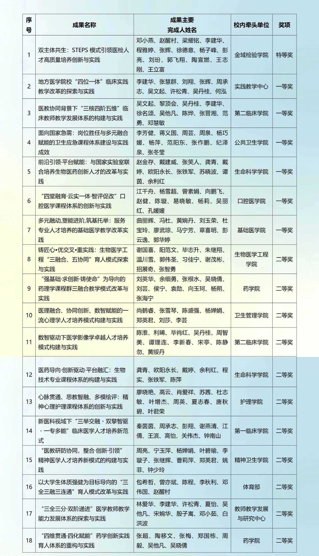 学校始终坚持教学中心地位,不断完善教学建设制度、优化教育教学环境、健全激励机制,为教师开展教学创新与改革探索提供了坚实保障。下一步,学校将进一步深化教育教学改革,不断提升人才培养质量,为打造高水平医学人才培养高地、助力健康中国建设贡献更多广医力量。