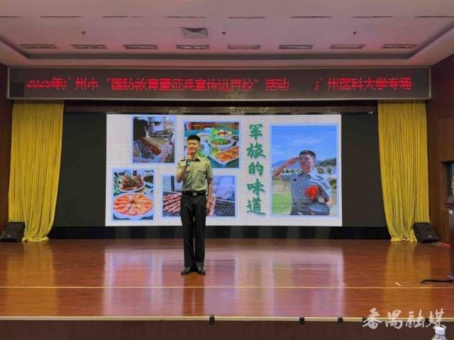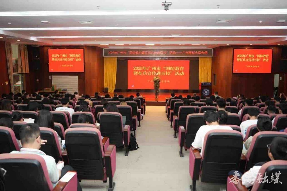 广州市国防教育暨征兵宣讲队的三名成员结合自身经历及体会,向同学们生动讲述红色故事与强军历程,用鲜活事例展现军人使命与担当,引发在场学生强烈共鸣。