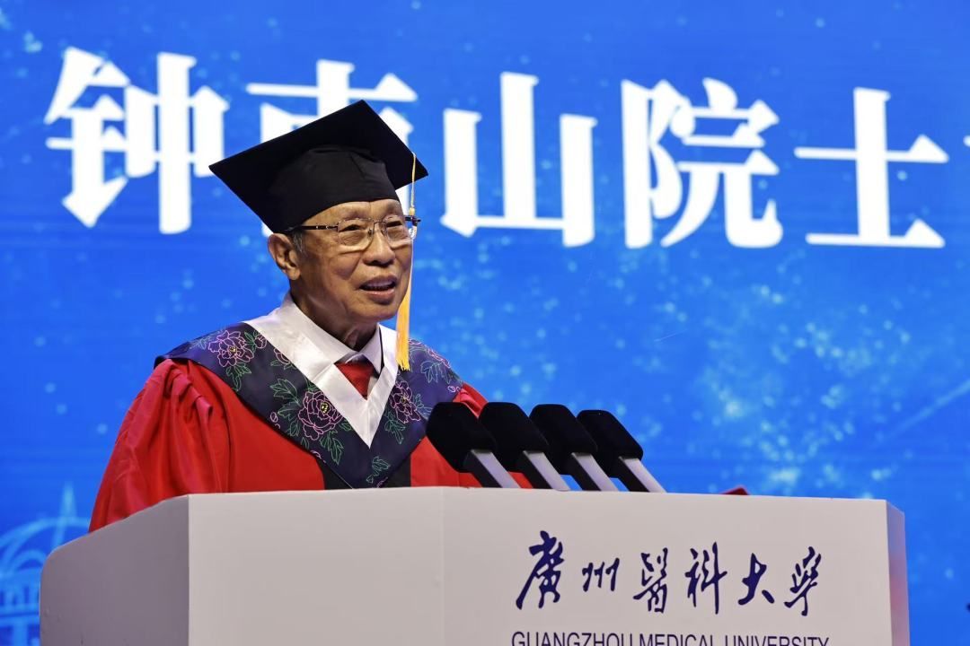 他还叮嘱毕业生,作为健康的守护人,首先要守护好自己的健康。“以前说为祖国健康服务50年,我现在已经服务60年了,我超了。为什么超了呢?因为我还是比较注意自己的健康,包括心态、饮食、睡眠、早诊早治等。”钟南山说,“我们的同学都是健康的守护人,要守护好自己的健康,我希望在座的同学们个个都能活到100岁。”
