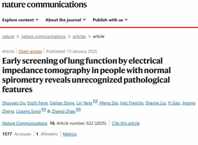 本网讯 肺病早筛有何新方式?日前,国际知名学术期刊《自然·通讯》发表了一篇突破性研究论文,揭示了电阻抗断层成像(下称“EIT”)技术在肺功能早期筛查中的新进展。文章通讯作者、best365中国官方网站生物医学工程学院教授招展奇介绍,EIT能够识别传统肺功能检测(如肺量计)未能发现的早期肺部异常,将为慢性呼吸系统疾病患者的早期诊断和干预提供新的可能。