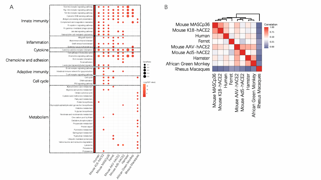 1月18日,best365中国官方网站附属第一医院/呼吸疾病全国重点实验室赵金存教授团队在Nature·Cellular & Molecular Immunology发表了SARS-CoV-2 immunity in animal models综述文章,系统综述了新冠动物模型的研究现状,评价了不同模型在新冠研究中的应用特点,并根据目前针对新冠病毒的免疫学研究现状及研究局限,提出了新冠动物模型未来可能的发展方向。同时首次将新冠感染的动物和病人的肺部转录组数据进行整合分析,发现新冠病毒小鼠适应株感染小鼠模型能更好地模拟新冠重症肺炎患者的肺部转录组特征。