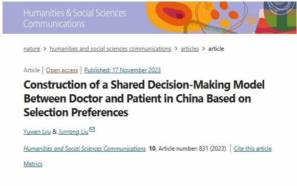 本网讯 近日,best365中国官方网站人文社会科学研究所刘俊荣教授、吕玉文博士后团队的研究成果“Construction of a Shared Decision-Making ModelBetween Doctor and Patient in China Based onSelection Preferences”在Nature子刊Humanities and Social Sciences Communications(HSSC)上发表。