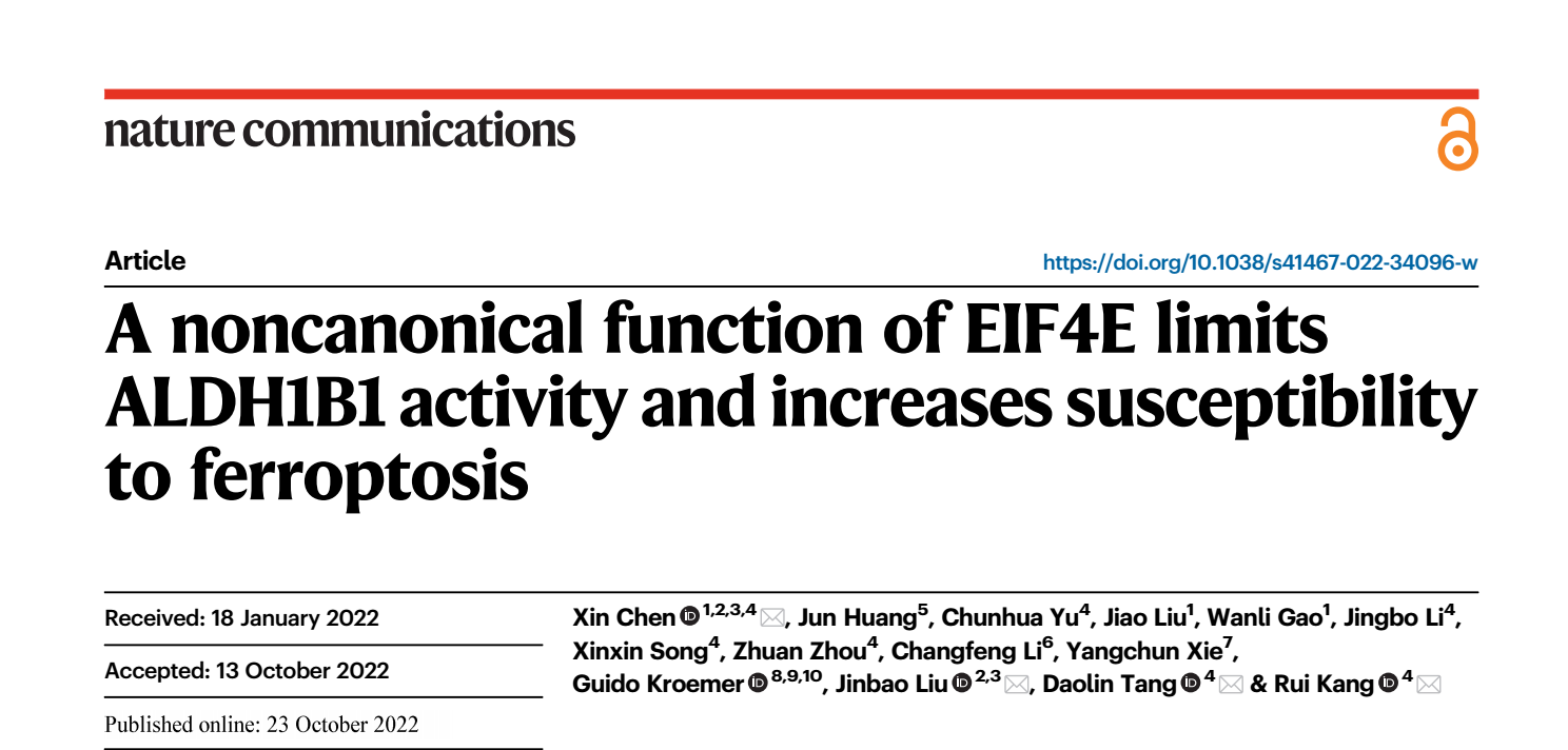 刘金保教授团队发现EIF4E促铁死亡的新功能