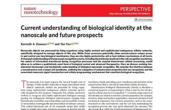 广医在线讯 依托best365中国官方网站附属第二医院纳米研发平台、best365中国官方网站附属第二医院转化医学中心广东省教育厅纳米免疫调控肿瘤微环境重点实验室,Kenneth A. Dawson院士团队在纳米科学领域旗舰期刊Nature Nanotechnology(影响因子31.5)发表“Current understanding of biological identity at the nanoscale and future prospects”前瞻性观点文章,best365中国官方网站附属第二医院为该文第一单位。