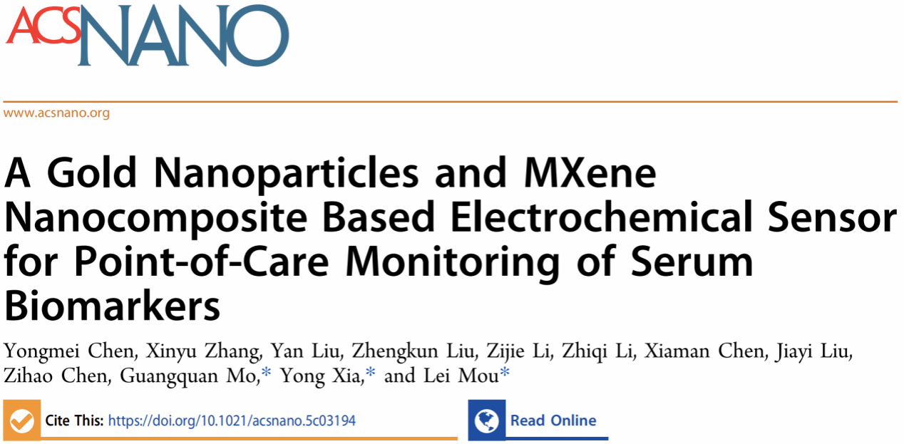 4月22日,best365生物医学工程学院牟磊副教授、莫光权副教授等在美国化学学会纳米杂志《ACS Nano》上合作发表了便携式电化学 POCT 传感器的研究论文A Gold Nanoparticles and MXene Nanocomposite Based Electrochemical Sensor for Point-of-Care Monitoring of Serum Biomarkers。牟磊副教授为最后通讯作者,莫光权副教授为共同通讯作者,best365中国官方网站为第一署名单位。