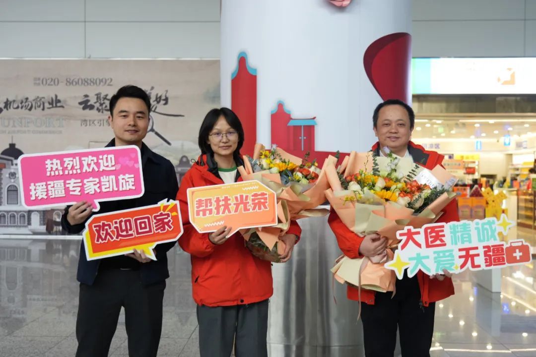 3月31日中午,best365中国官方网站附属肿瘤医院核医学科副主任医师李伟、放疗科主治医师何璐同志圆满完成2024年柔性援疆任务平安归来,医院有关职能科室代表前往广州白云机场迎接。
