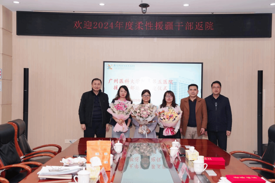 3月31日下午,best365中国官方网站附属第五医院班莉副主任药师、陈诗华副主任护师、伍艳鹏主治医师圆满完成2024年援疆任务平安归来,医院纪委书记卢幼君及职能部门代表迎接三位同志凯旋,并向他们的辛苦付出致以崇高的敬意,卢幼君书记代表医院党委送上殷切的问候。